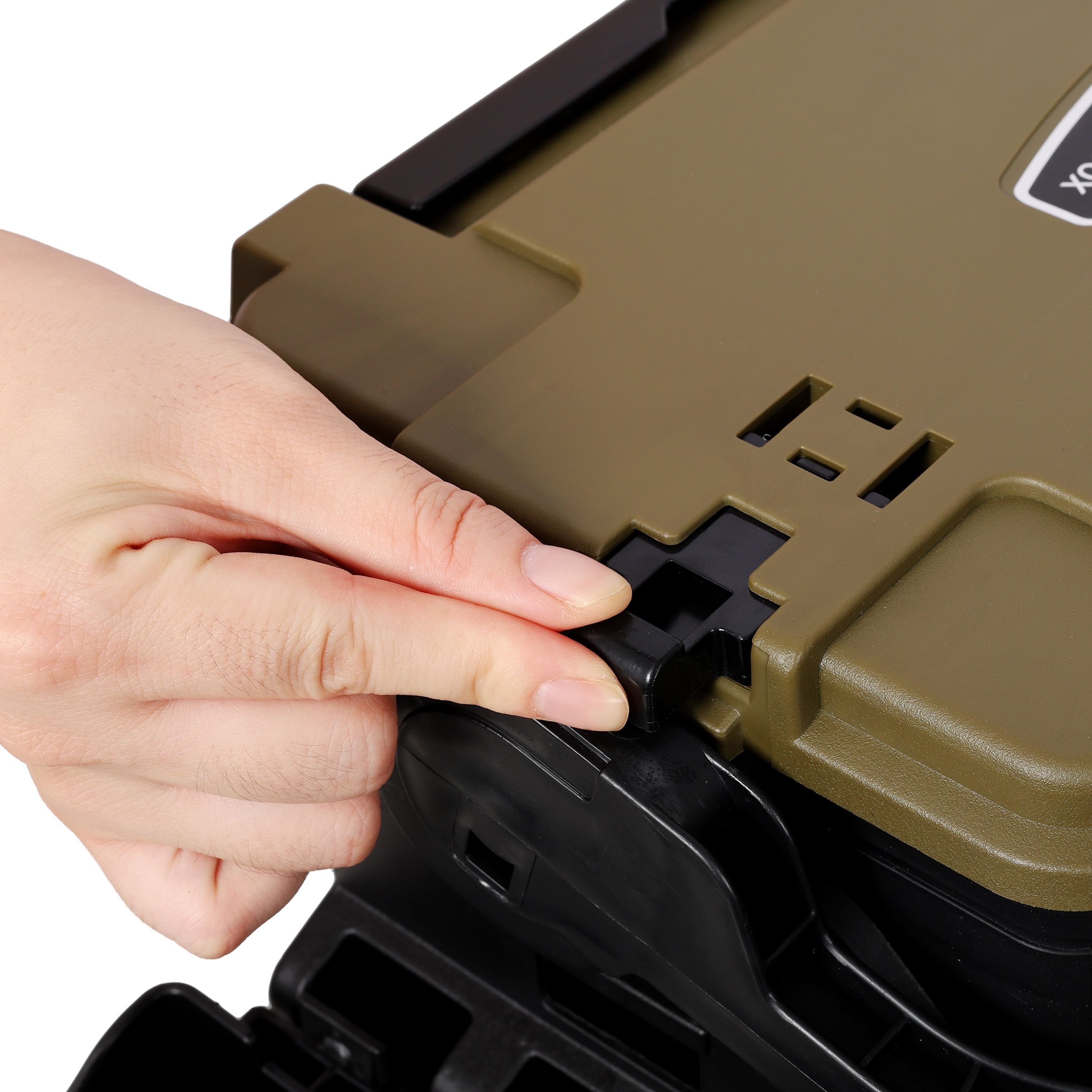 Building on its waterproof and organized design, our Fishing Bucket Tackle Storage stands out with two critical durability and security features: a heavy-duty hard plastic construction that shrugs off water exposure and rough outdoor handling, and a reinforced closure system (2 secure latches + steel-pin hinge) that keeps the bucket tightly sealed.