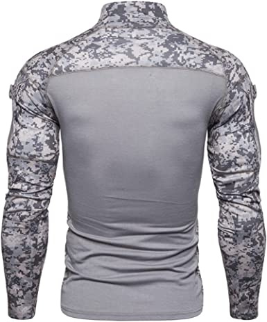 Home > Men's Casual Camouflage T-Shirts Splicing Craft Slim Fit Shirts Zipper Neckline Long Sleeve T-Shirts