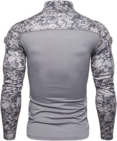 Men's Casual Camouflage T-Shirts Splicing Craft Slim Fit Shirts Zipper Neckline Long Sleeve T-Shirts