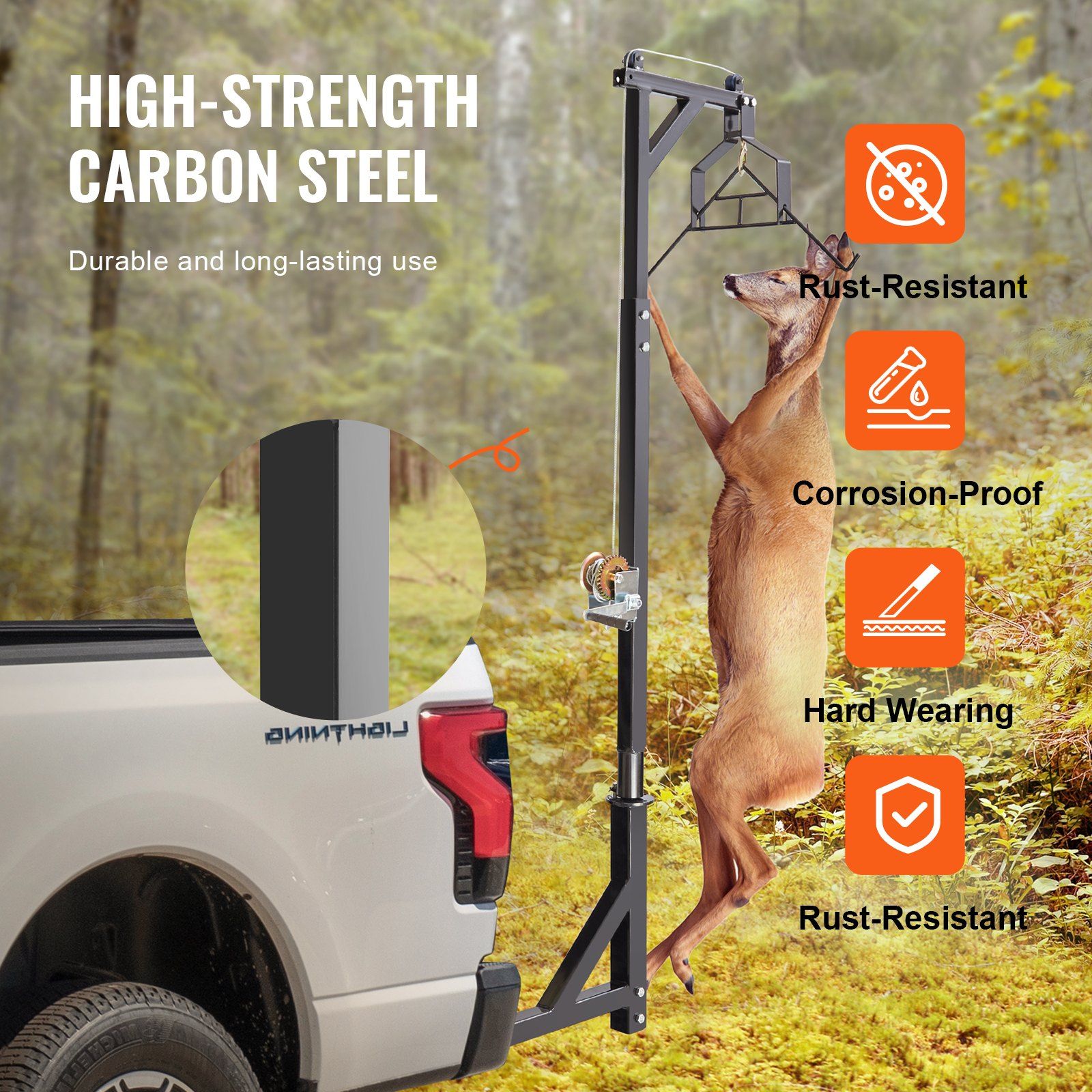 VEVOR Hitch Mounted Deer Hoist, 400 lbs Load Capacity, Hitch Game Hoist, Truck Hitch Deer Hoist with Winch Lift Gambrel Set, 2-inch Hitch Receiver VEVOR Hitch Mounted Deer Hoist, 400 lbs Load Capacity, Hitch Game Hoist, Truck Hitch Deer Hoist with Winch Lift Gambrel Set, 2-inch Hitch Receiver VEVOR Hitch Mounted Deer Hoist, 400 lbs Load Capacity, Hitch Game Hoist, Truck Hitch Deer Hoist with Winch Lift Gambrel Set, 2-inch Hitch Receiver