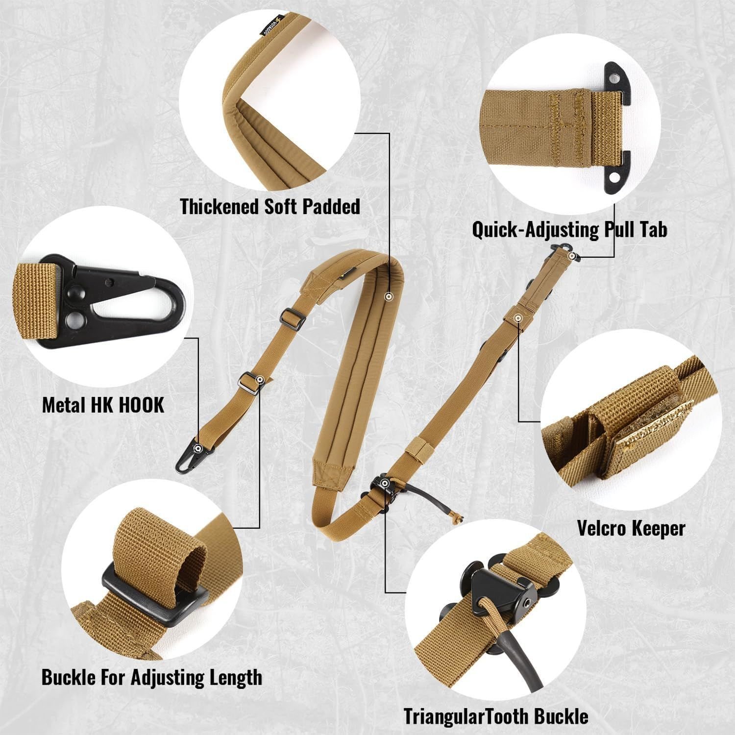 Home > QD Sling 2 Point Sling Quick Adjust Gun Sling with HK Hook Soft Shoulder Pad Sling, Rifle Sling for Hunting Tactical Strap