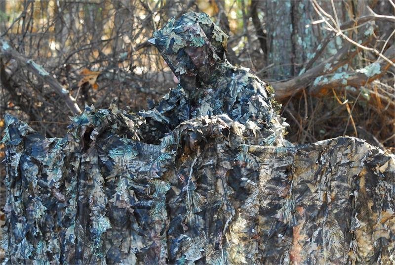 • DOES NOT SNAG OR PICK UP DEBRIS  Unlike traditional ghillie suits, the 3D leaves do not attach to local vegetation. This camouflage suit is constructed of material that does not hold debris. This suit is great for densely wooded areas, concentrated brush and open prairies.