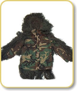 • By using a netting on the outside of the BDU's, you can add natural vegetation while out in the field.  This allows you to change your colors by adding sticks or leaves